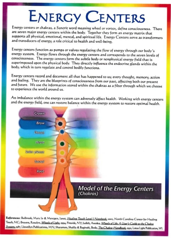 Healing Touch, a relaxing, nurturing energy therapy safe for all ages, uses gentle touch or hands above the body to assist in balancing our physical, emotional, mental & spiritual well-being. It addresses the body’s energy field & chakras to support one’s natural ability to heal. Healing Touch, also referred to as energy healing, therapy or medicine, integrates with standard medical care & is used worldwide in hospitals, nursing homes, hospices, private practices & spas. My private practice intent is to further integrate energy field healing into our present cultural environment to enhance individual well-being.